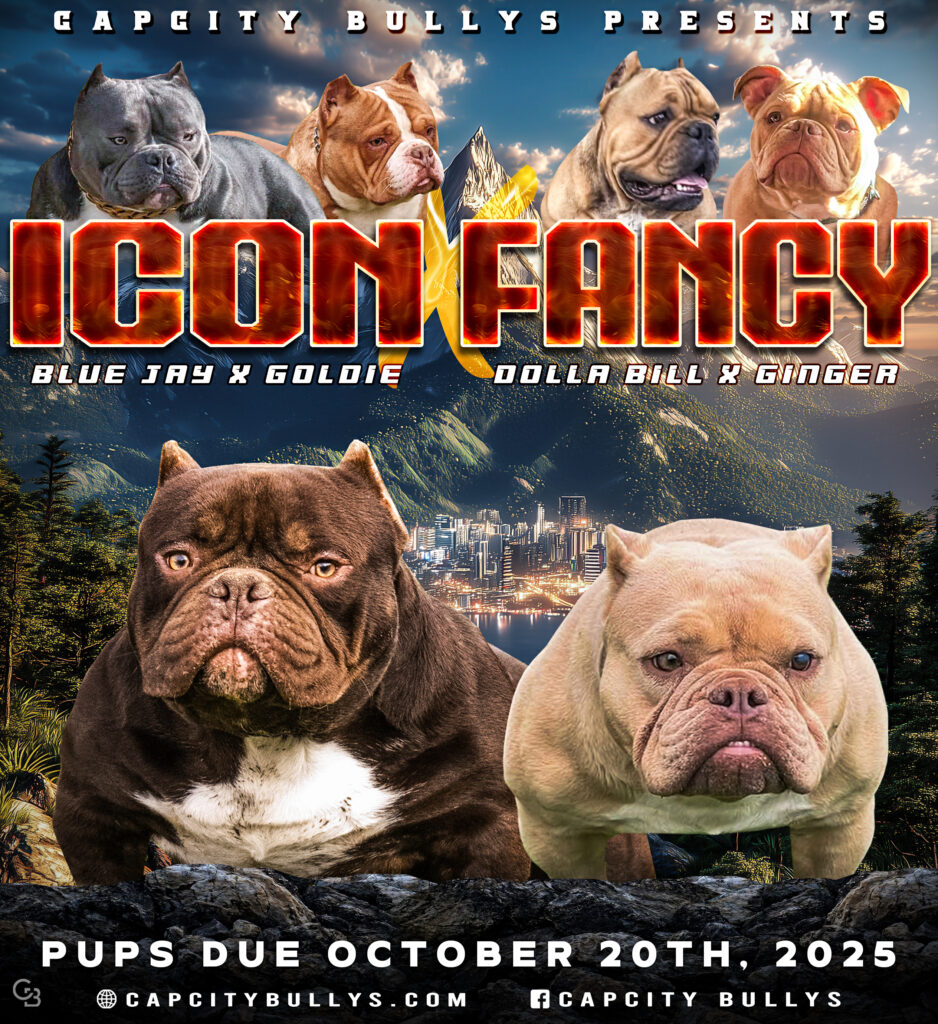 Capcity Bullys proudly presents the highly anticipated Icon Γ Fancy breeding β a powerhouse pairing designed to deliver the next generation of elite Micro Bullies.