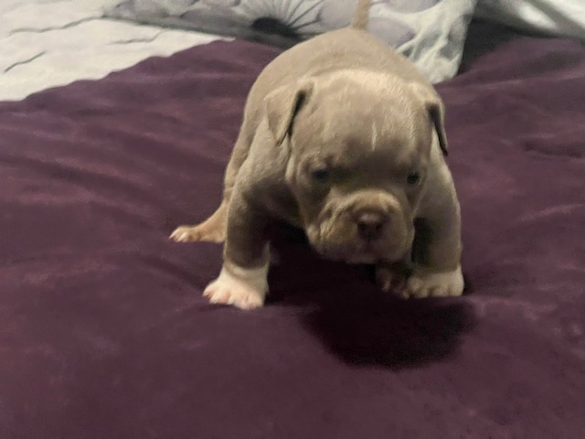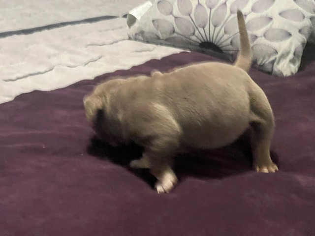 Meet Titanium Ace, – Born October 23rd 2025 – a standout Lilac Micro Male from our elite Icon × Bella breeding. Built with precision and power, Titanium Ace brings everything you expect from a next-level Micro Bully — compact frame, dense bone, clean lines, and a confident stance that demands attention.
