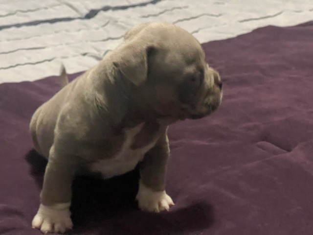 Titanium Ace carries the complete package: structure, temperament, and eye-catching color. He represents the modern Micro Bully standard with exceptional balance from head to tail.